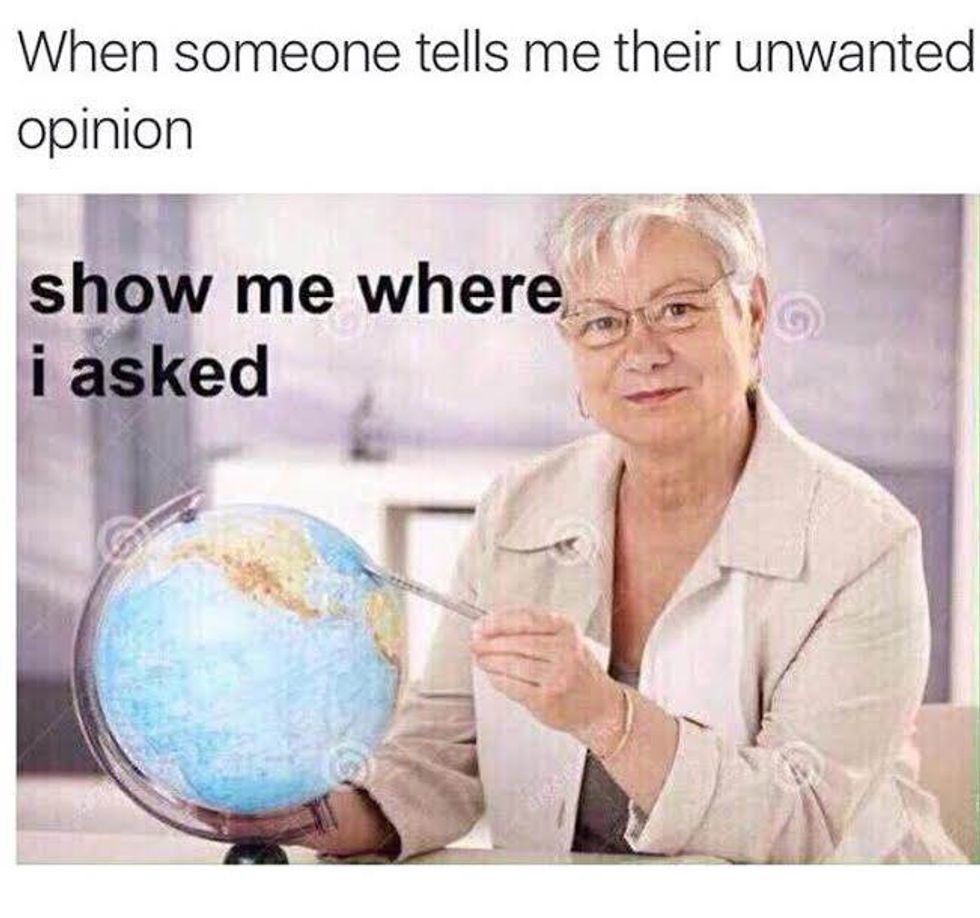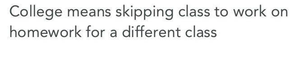 This is the time of year when people start to realize their grade depends on some participation and therefore must do so in class. In many classes, students tend to say anything they can come up with for the sake of their grade. And, I totally think that is okay. Trust me, I have done it. But, mid term season is also the time when people are very stressed and easily on edge, hence the sass level can be very high. The one thing I despise about mid terms the most is when people compete to see who is more stressed. You know, when you get six hours of sleep and are barely functioning and your friend tells you he or she only got two hours of sleep and look at them! Excuse you, this is not a competition to see who can be sleep the least, spend the most hours in the library, or even drink the most amount of caffeine. First of all, it's not healthy. Second of all, it's rude. Please, don't try to one up everyone you talk to because everyone is stressed during mid terms.
