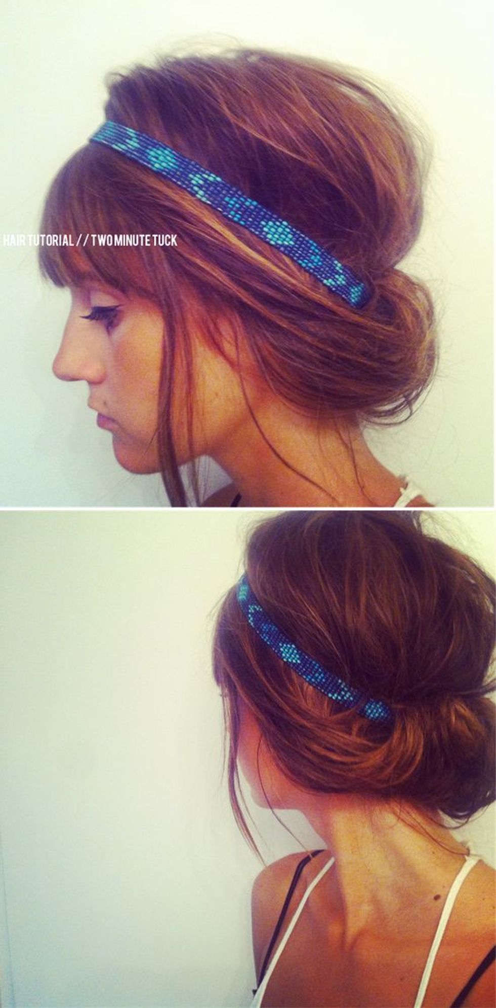 I came across this hairstyle one day while scrolling through Pinterest and I absolutely love it. All the material you need is a headband that is thick enough to hold your hair in the back and you're done. Simple and cute.