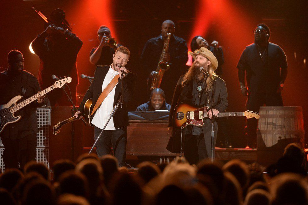 Chris Stapleton and Justin Timberlake performed together singing Tennessee Whiskey by Stapleton and Drink You Away by Timberlake.