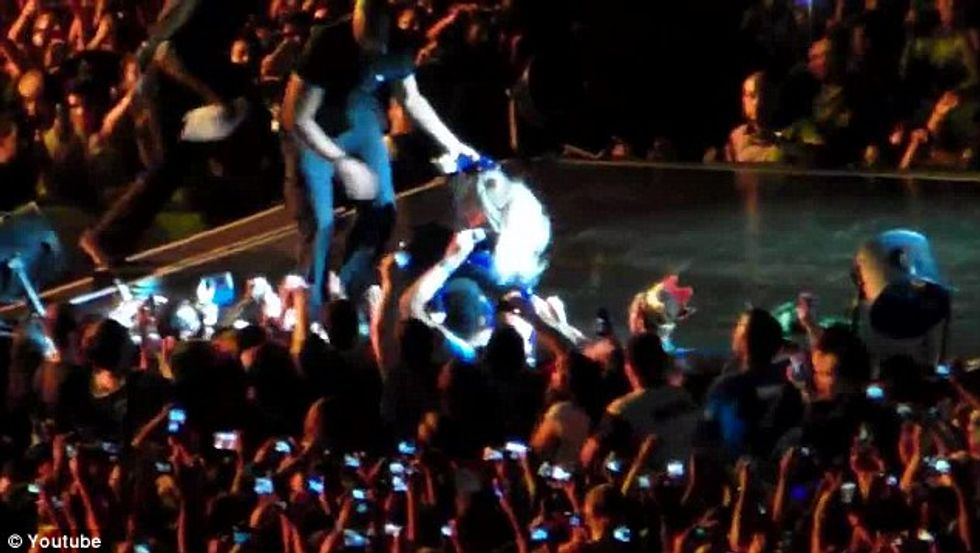 Queen Bey’s fan base is obviously full of obsessive, crazed divas. But aside from any normal human being who can’t resist the glamour that radiates off of such a perfect person, there are the fans that take that obsession to an extreme. A Brazilian fan once was graced with Beyonce’s presence during one of her performances as she was signing to the crowd. Apparently that was the perfect moment for this man to get too excited and pull the singer down from the stage as a result from the aggressive exchange of affection.She recovered in the best way possible and actually addressed the situation with poise and gratitude for her fans.
