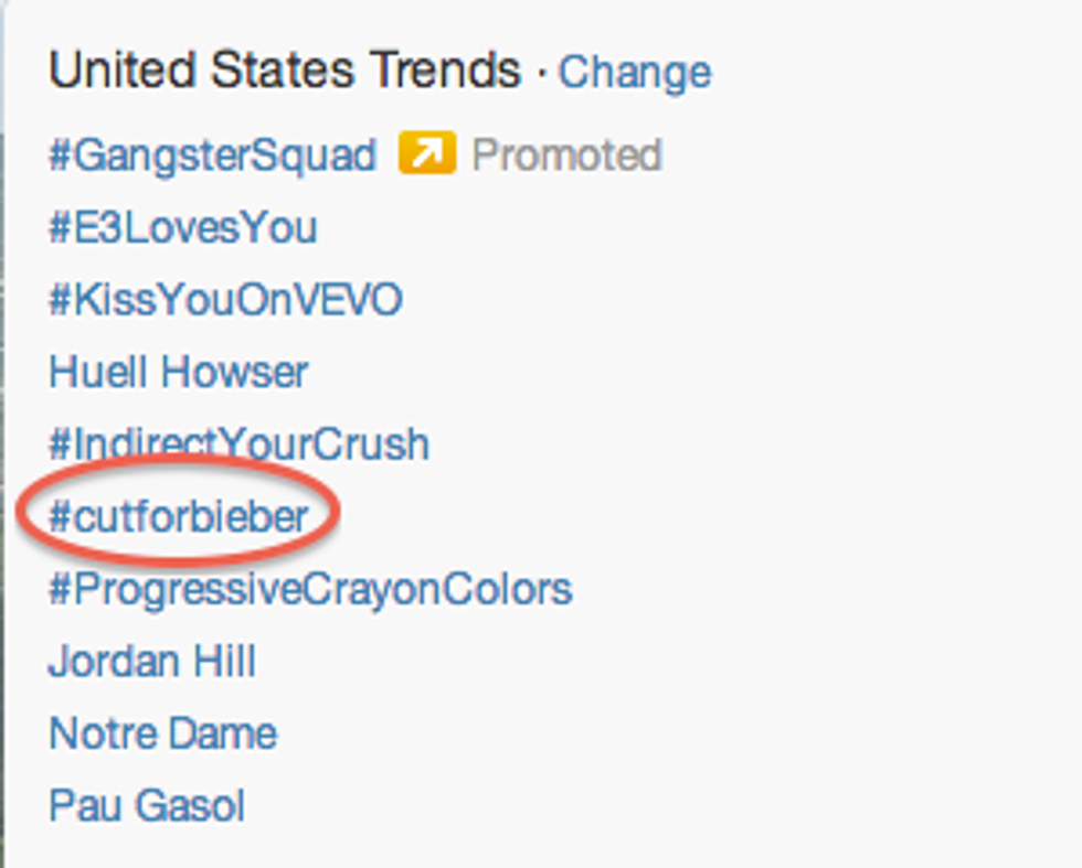 We all know about the unfortunate trends of social media that seem to consume our timelines on occasion. One of the worst ones that swept the internet was the #CutForBieber hashtag launched as an original hoax to attempt to get Bieber to stop smoking marijuana. With the fan base that the teen sensation has consisting of mainly young, teenage girls, the campaign was taken extremely seriously and there were masses of photos with the hashtag supporting the act of cutting oneself that flooded the internet. There were a multitude of young girls who didn’t even understand what they were doing who followed what they believed was right and what would get them noticed by the pop star. (Obviously due to the graphic nature of some photographs found online, Twitter screenshots have been posted instead.)