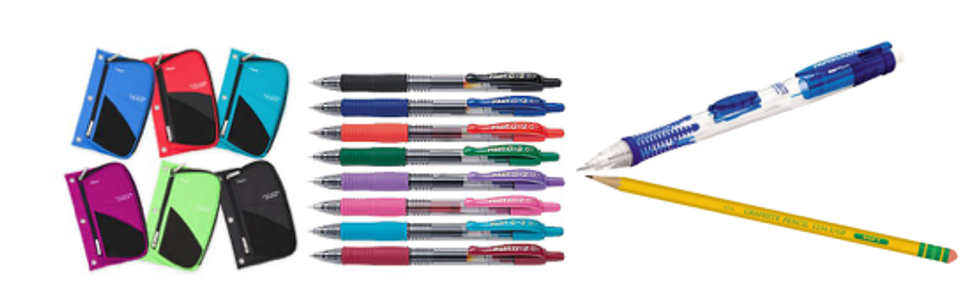 A pencil case is the easiest way to avoid losing pens, pencils, and erasers. Just go buy a little bag; it doesn't have to specifically be a pencil case, and fill it with at least two pencils and at least one black, red, and blue ink pen. In addition to this, maybe throw a highlighter in there, because your teacher might tell you something very important. You can also put anything else you like in there, but the pencils, highlighter, and pens are a necessity on the first day of school.