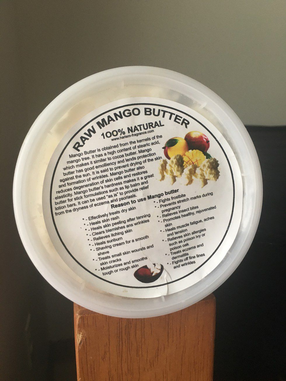 Raw mango butter is another product in my rotation that is just as natural and just as amazing as the rest. Mango butter is obtained from the kernels of the mango tree. It has a high content of stearic acid, which makes it very similar to cocoa butter. I especially like to use it in the summer time more because it lends protection from the sun. However, it is just as useful in the winter because it heals the skin from frostbite as well. It fights off fine lines and wrinkles as well as treats small skin wounds and heals skin peeling. As a person with tattoos, I opt to use mango butter instead of the suggested ointment when taking care of my freshly inked, skin.