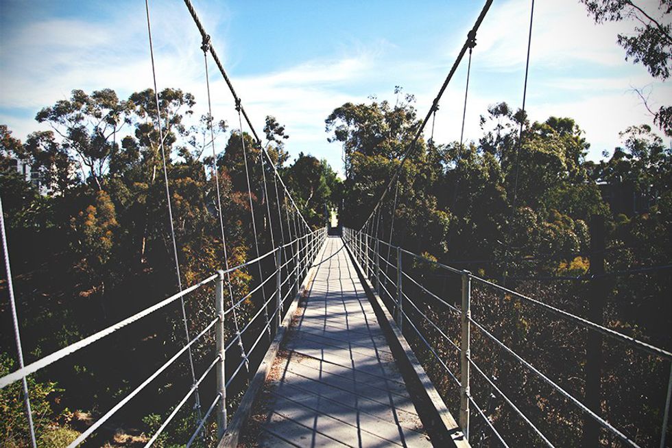 This bridge is right in the heart of the Bankers Hill neighborhood. It's secluded, secretive, peaceful, serene, and most importantly, it floats over hundred of treetops, and sways side to side as you walk on it.