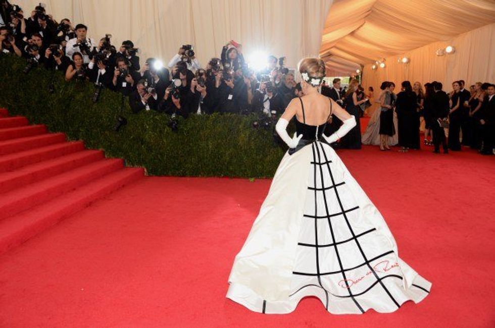 I saved the best look for last. Queen B wore a puff-sleeved, nude latex gown from Givenchy haute couture and more than 100 carats of Lorraine Schwartz jewelry. As it was expected, Twitter went abuzz over Beyoncé's bold look. Many people commented that Beyoncé was wearing "Becky's" skin, but who the heck knows? One thing that Vogue and I (and pretty much everyone else) can agree on is that Beyoncé definitely ruled the 2016 Met Gala red carpet.
