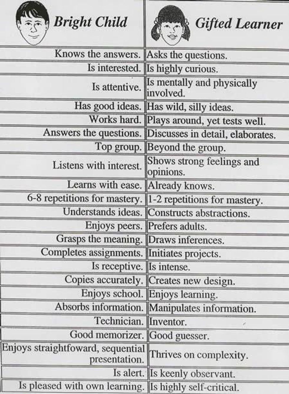 There is not just one type of gifted learners. Some of us use our intelligence to make good grades. Some of us simply want to solve one problem at a time and make life a little easier. Some of us just cannot excel under strict rules and formats. My favorite part of a gifted classroom was the ability to solve a problem however you can. The teacher was there to simply facilitate discussions and get our thoughts started. Their job was never to tell us how to do a task, but rather to see what ways we could come up with.