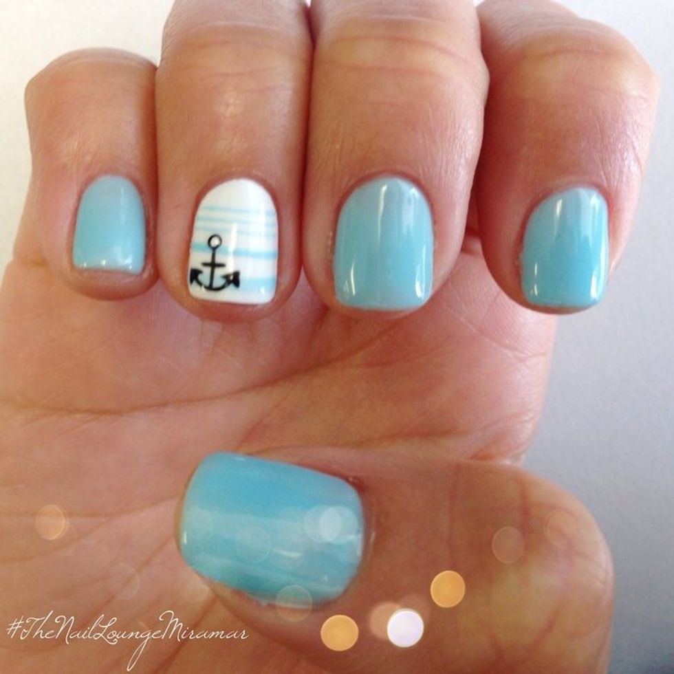 I love this design because anchors are simple and classic. Using a light blue that’s slightly brighter than the one pictured, like OPI’s “Breakfast at Tiffany’s” will give your nails a calm, beachy vibe.3. Palm trees