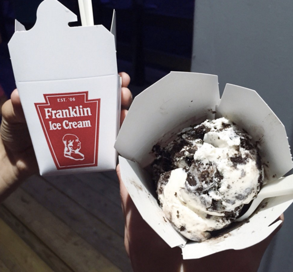 Franklin Fountain is a quaint little ice cream and milkshake shop that I stumbled upon when I was walking around Philadelphia. At first, I thought I could just get a vanilla ice cream in a cone, but when I looked at the menu, I was surprised at all of the different flavors and specialties! There were of course the classic flavors, like chocolate and vanilla, but also on the menu appeared flavors like maple walnut, green tea, and Hydrox cookie, which sounds a little scary but it is really an old-fashioned Oreo type of cookie. There are also banana splits, milkshakes, sundaes, retro sodas, and egg creams (extra thick milkshakes.) Besides all of the exotic and delightful flavors, the decor of the shop was so adorable and really made me feel like I had traveled back in time. I ordered a scoop of the Hydrox cookie ice cream and it was so yummy that I am immediately returning the next time I go into the city.