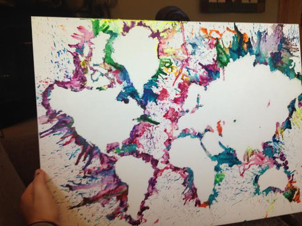 The pins on my board range from Valentine’s Day projects to bath bomb recipes. The one project I have completed is a crayon art canvas of the world. It turned out very well, if I say so myself.