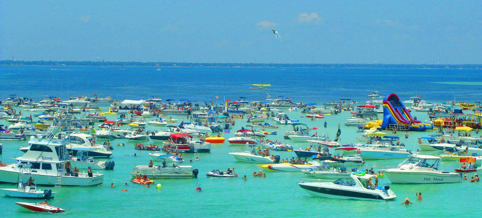 With a quick boat or jet ski ride, you can cut off your engine and relax on crab island. This quant little spot is constantly lively with people, a floating obstacle course for kids and bar for adults.