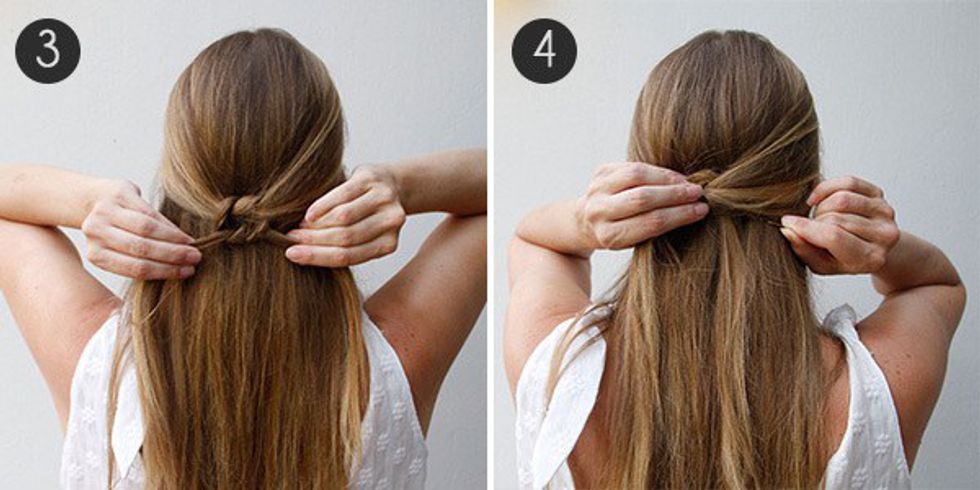 The best thing about this cute style is that it can be done a ton of ways. Pull back two pieces from the front or part your hair completely in half to get this look. My personal favorite is the half up bun, it takes less than ten seconds and it's super easy to throw up and head to the beach.