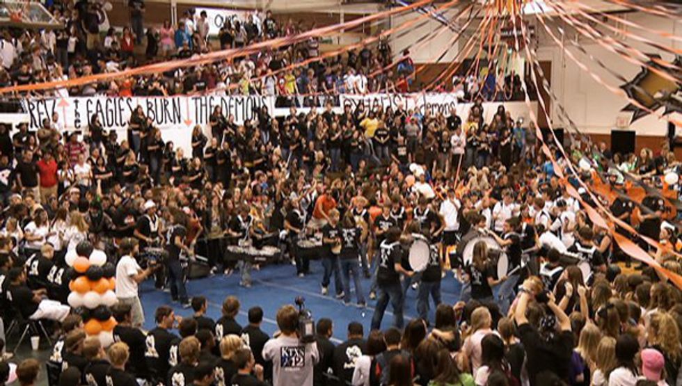 Every school has a drum line, and every school has a school song, but does every school have "The Beat?" This is basically the "hype-man" of the football team. The drum-line would come out, either on the field or at a pep-rally, and begin A-High's distinguishable anthem followed by different beats, screaming, and mosh-ing (not allowed but couldn't go without). It's pretty hard to explain unless you can see it in action. But everyone knows, as soon as the first three beats are played, its about to go down.