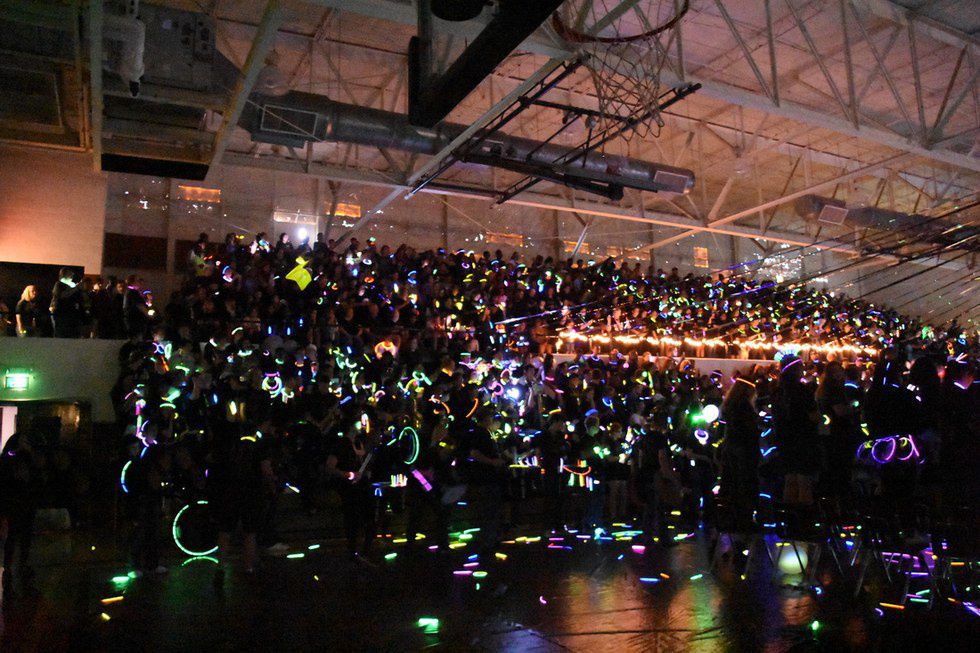 Thousands of glow sticks everywhere, fluorescent dance routines, and screaming so loud your ears popped, all added up to a pure and insane amount of school spirit.