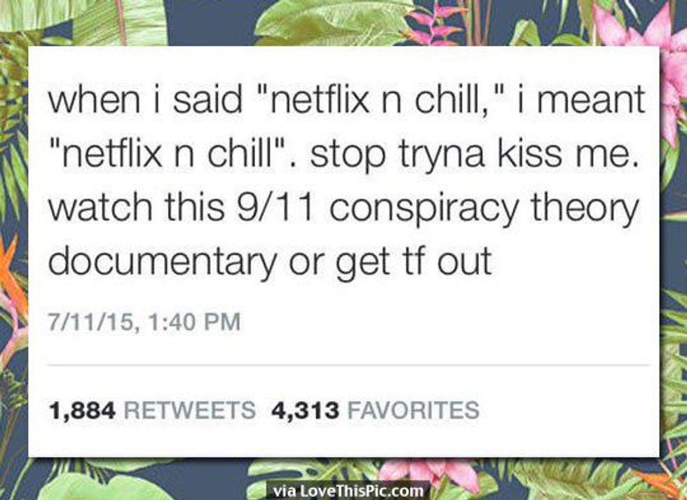 When did this activity become relationship goals? While I am unsure of the origins of this activity, I know that it has made its way into the hearts of many. That really sucks. Instead of going on adventures and spending quality time with our significant others, we settle for snack-less, lame, makeshift dates. I have nothing against Netflix or chilling, but I prefer to binge watch "Grey’s Anatomy" without someone invading my personal space, thank you very much.