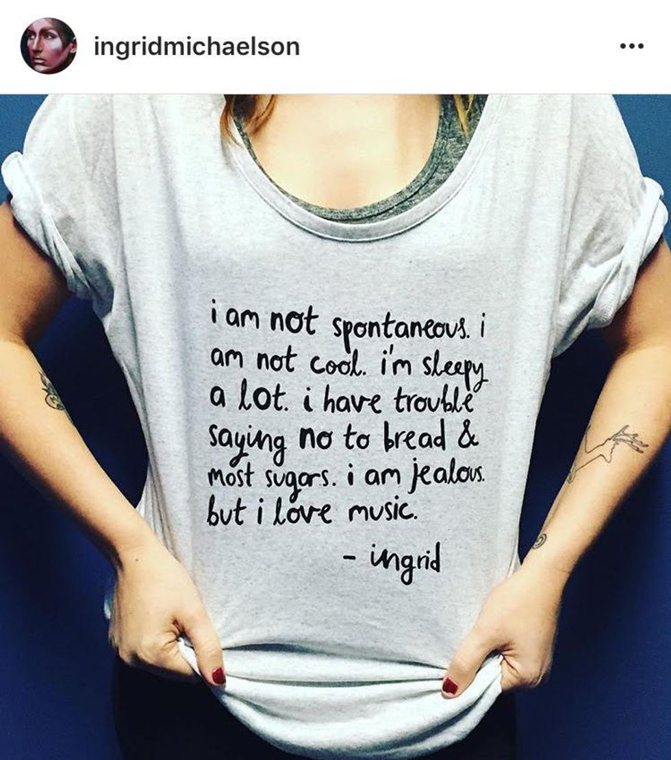 She lets you know that she is not perfect and just as awkward as you. Whether it's watching "Home Alone" on her tour bus, excessive use of Snapchat filters or her inability to turn down bread, Michaelson seems more normal than most musicians.