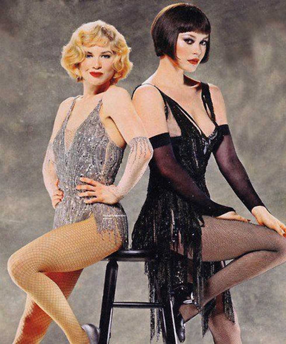 It's the 1920s! Of course, the costumes are a lot of fun. All of the men in the play are dressed in suits and ties, with the occasional bow tie, white shoes, and fancy hats. The women's costumes range from modest dresses covered in bows, to small numbers with lots of tassels and sparkles, to skimpy jail attire covered in black and white stripes. The costume designer for any production of Chicago has all the fashion of the 1920s to dig into.