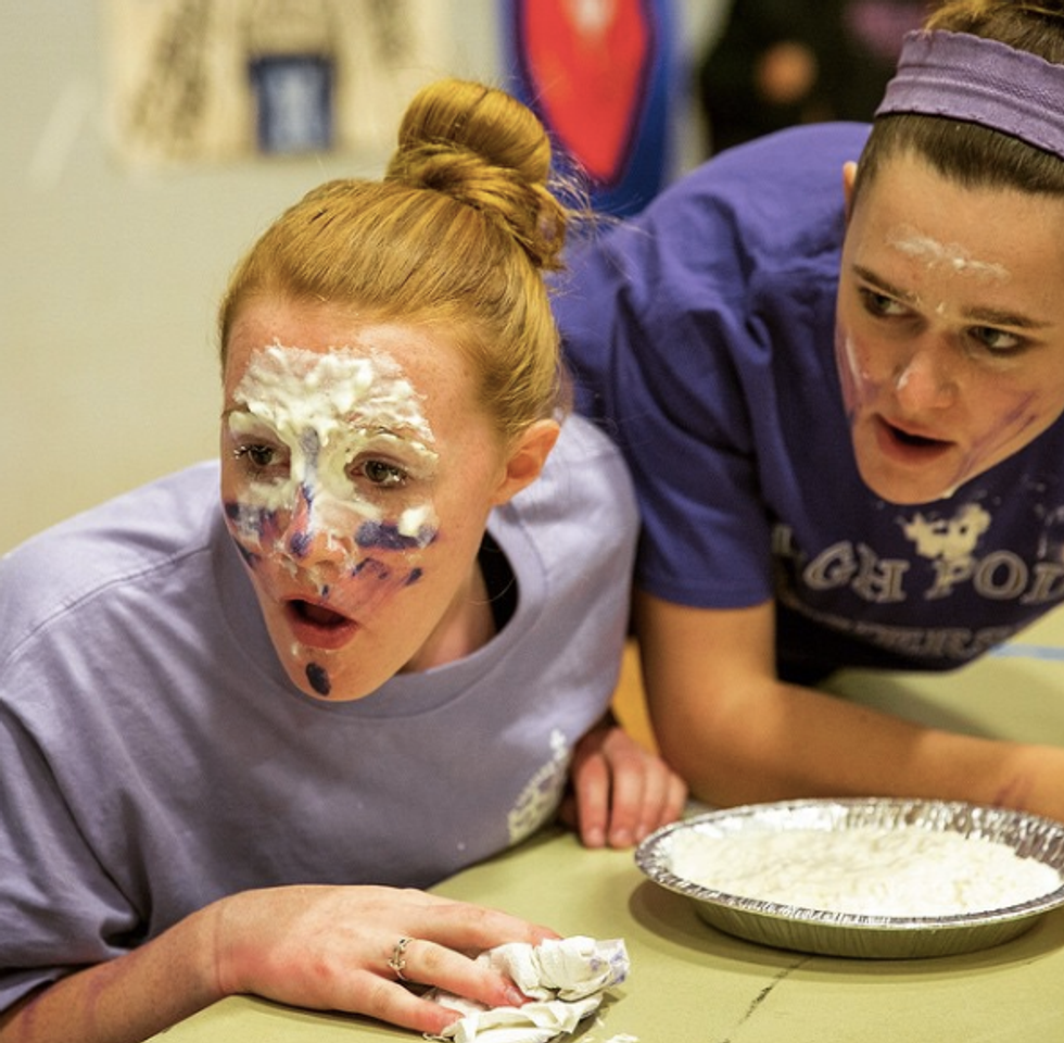 We love doing things together and as a team. You can find students and teachers having lunch together, hanging out in the common room talking about the latest music video or the coolest book they've ever read, or on the turf field playing another boarding school in the area and winning. There are so many events happening on campus all the time with the numerous clubs and organizations, sports teams, and art groups. For example, there's Winter Weekend, a weekend where dorms compete in numerous activities such as this bubble gum contest, where one must find a piece of gum in a plate of whipped cream and blow a bubble.