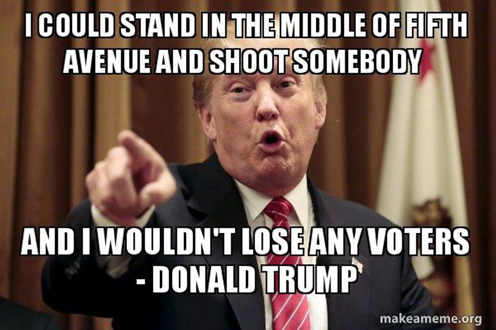 So if you were wondering, no, Donald Trump is not a diagnosed narcissist, but he sure as hell sounds like one (to me.) It is a huge pet peeve of mine when people are entitled, self-centered, and obnoxiously overconfident. These qualities drive me absolutely bonkers, and I just cannot stand having a president who might say something like “I could stand in the middle of 5th avenue and shoot somebody and I wouldn’t lose voters.”