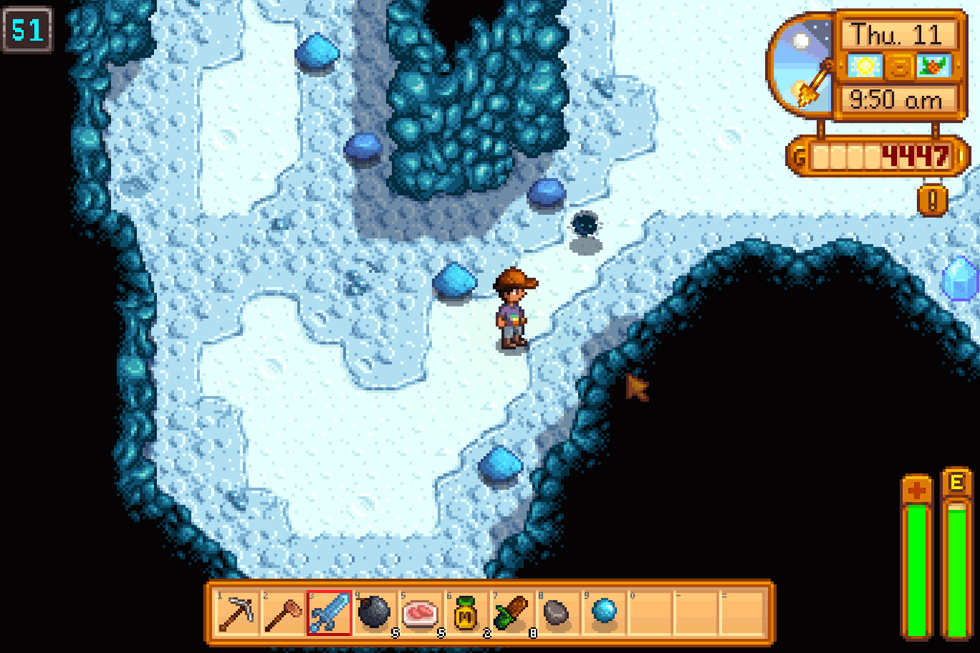 The mining in this game is somewhat challenging. You go down floors of mines (that seem endless) trying to find minerals, fighting oddly adorable monsters, and finding the next ladder down. Each floor is harder than the last and requires those who want to venture further to get better tools and materials.