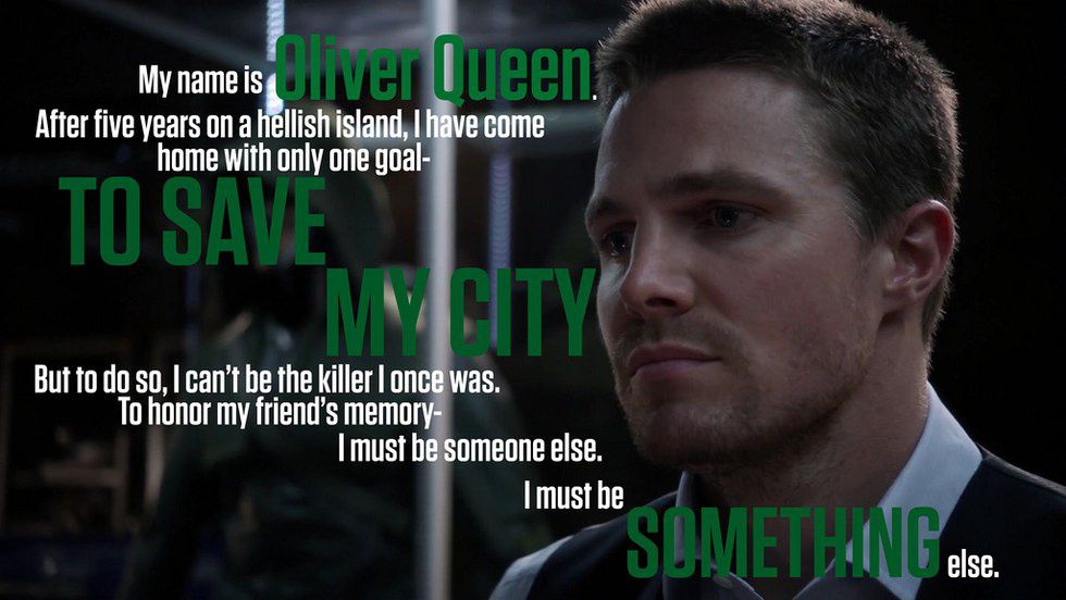 Oliver Queen was the ultimate bad boy, he slept around, partied hard, and didn't care... But after coming home from being through literal Hell (or technically purgatory) he changed. In fact, Oliver Queen and his alter ego the Green Arrow have changed a lot. His love for his city, his family and friends, and Felicity have made Oliver a better man and hero. He's strayed from his partying days and his terrifying torture techniques to become a good man, who just happens to be a hero on the side.