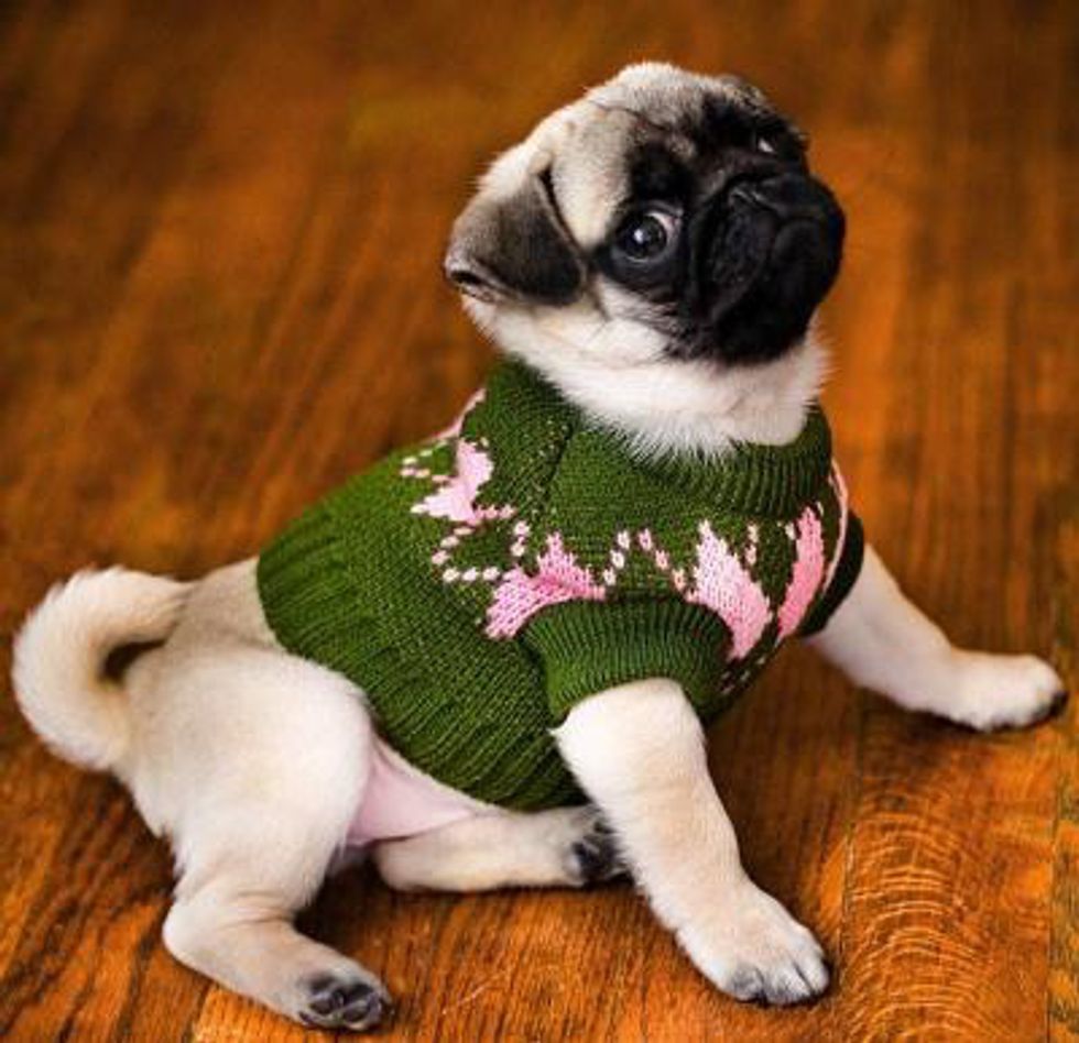 Since they might get cold in the winter, it's actually beneficial to put your pug in clothes. They're small enough to do so, but the only problem is that most of the time they'll stretch out their sweaters and their rolls will spill out of them but it's okay because what can be better than a pug wearing clothes?