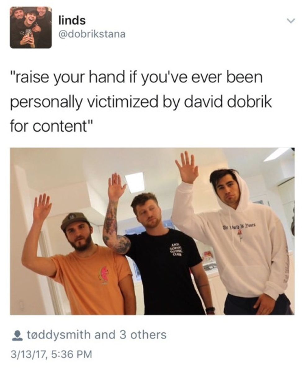 If you're in desperate need of a laugh a 4:20 minute-long video (the first joke of the video) from David Dobrik and his vlog squad may be all you need. On July 29, 2015, David Dobrik, a successful Viner, began making his notorious vlogs. They feature his friends, usually other viners, in whatever shenanigans they get up to and skits they perform. The vlogs spiraled into a group into that is now known as the 'Vlog squad' which includes Alex Ernst, his girlfriend Liza Koshy, Scotty Sire, Toddy Smith, Zane Hijazi, Heath Hussar, Big Nik, Elton Castee, theGabbieshow (Gabbie Hanna), Jason Nash, Erin Gilfoy and Carly Incontro. All of these people have their own Youtube channels which you should check out as well. But, in David's vlogs they all come together to make hilarious content. These are six reasons why you should be watching David Dobrik's vlogs.
