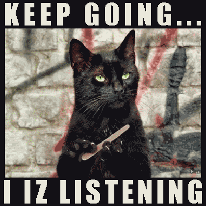 When you're just to the point in the day when you get back from a long day at work and all you want to do is vent to someone, the best person to go to is your cat! You'll tell them about how you can't handle dealing with customers anymore and she'll just stare at you with a blank face and occasional blink. Your cat may not be responding, but hey they stuck around and listened!