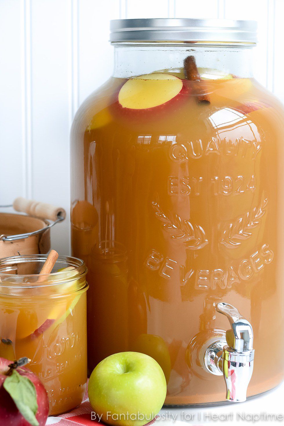 1.Pour all but 1/4 of the 2 gallons of Apple Cider, right in to a drink dispenser
