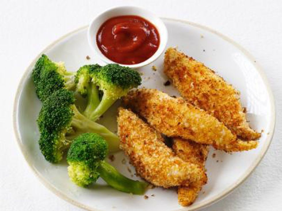 Sure you could order greasy chicken tenders from the bar next door, or you could make your own that taste a heck of a lot better. Not to mention waaay more fresh. Perhaps some homemade curried ketchup on the side? Yes please.