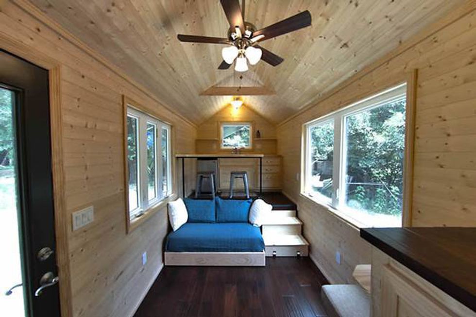 Because tiny houses are so tiny, kitchens are limited. If you don't like to cook, you won’t even care that the cooktop is a plugin and a mini fridge is all you have for the cold stuff.