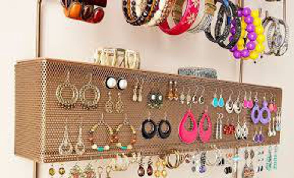Now I am not sure if everyone does this, but I do at least every 2 months. I'll realize that my earrings and necklaces look terrible in their stand on my dresser, so I'll spend the next 2 hours trying to find the perfect way to organize them- by color(of course) but also by studs or dangling , beaded or studded, even by length.