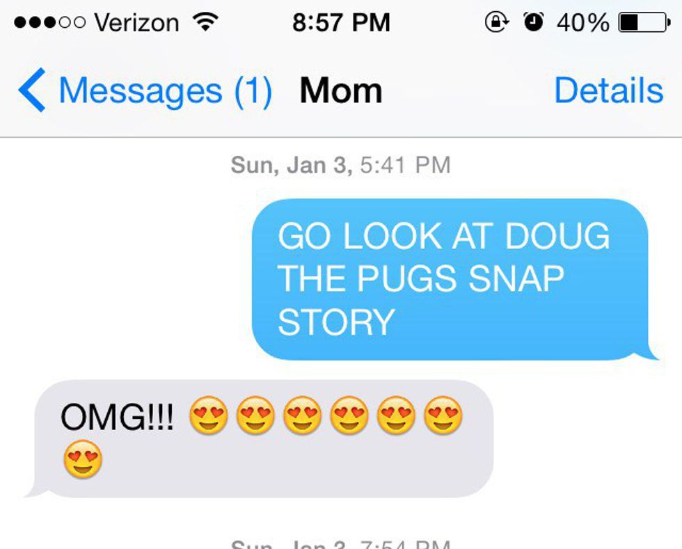 Fun moms send heart eye faces when they're proud and lots of crying faces when you text them about how many times you tripped on your way to class. There's no doubt that she's totally aced modern day lingo.