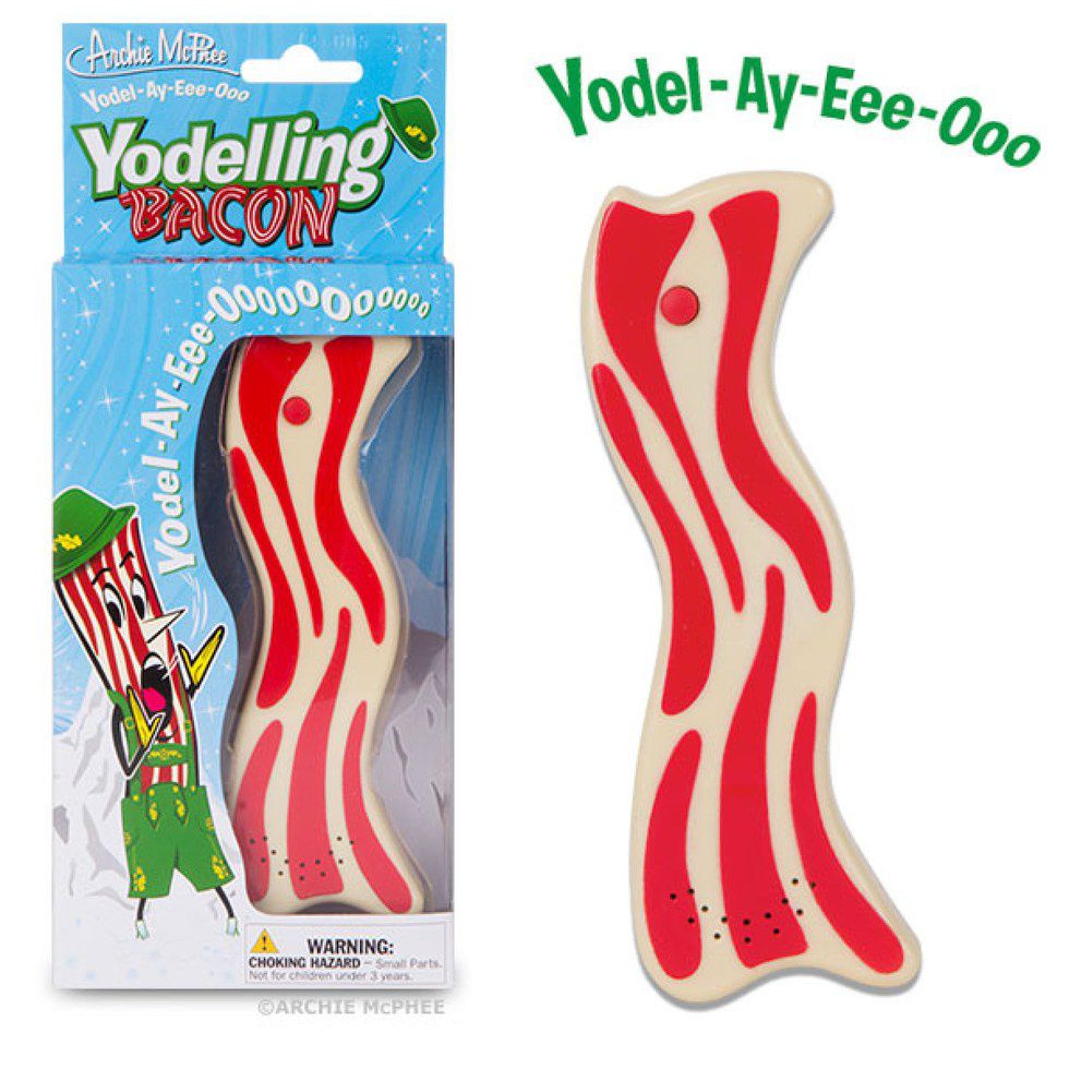 Everyone loves bacon. I don’t know if everyone loves yodeling, but your loved ones will have hours of fun with this yodeling bacon.