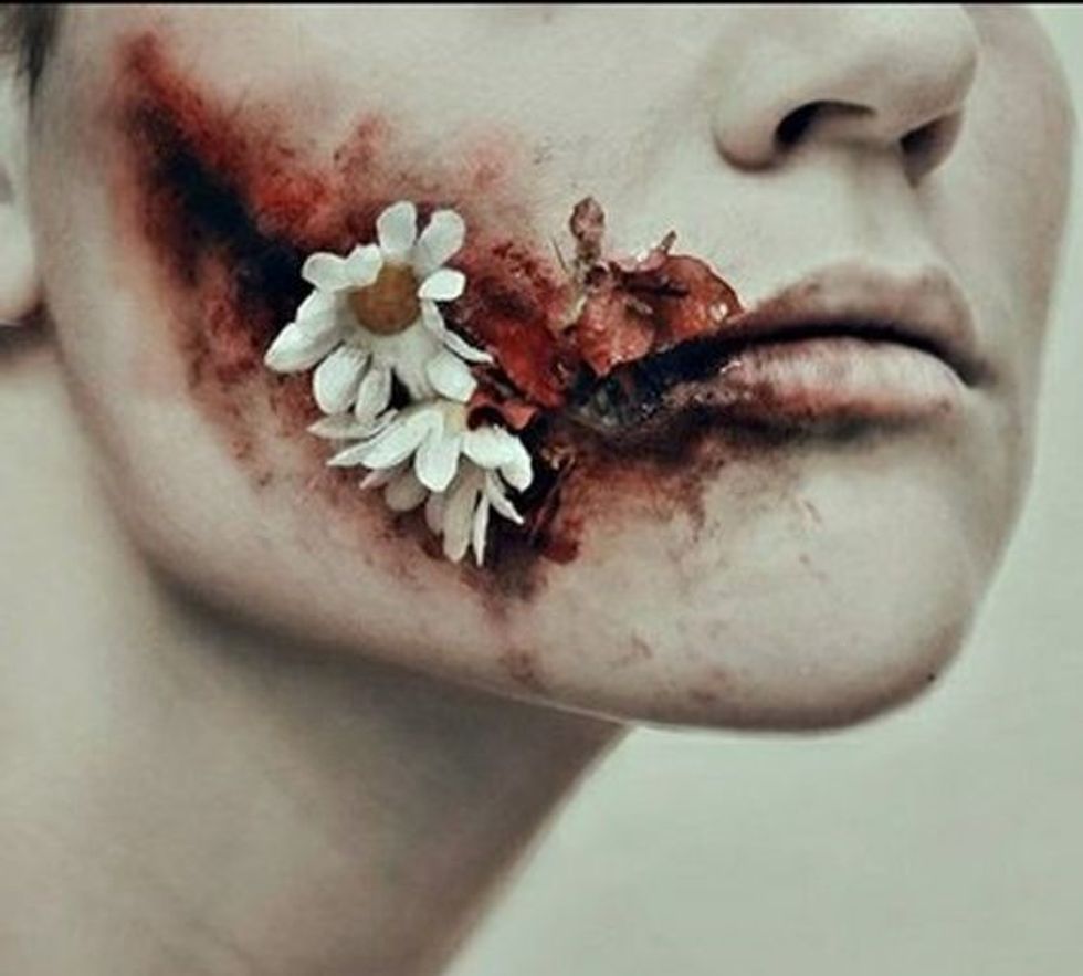 While this one may look a big harder, don't worry. All you'll need for this look it some fake blood, scar wax, fake flowers, liquid latex, and spirit gum (don't forget the remover!). Each of these items will cost around $5, so all added up, it's still less than a Halloween costume. Some of these items can be left out, such as the liquid latex, I just don't recommend it if you want to make this makeup as real and long-lasting as possible.