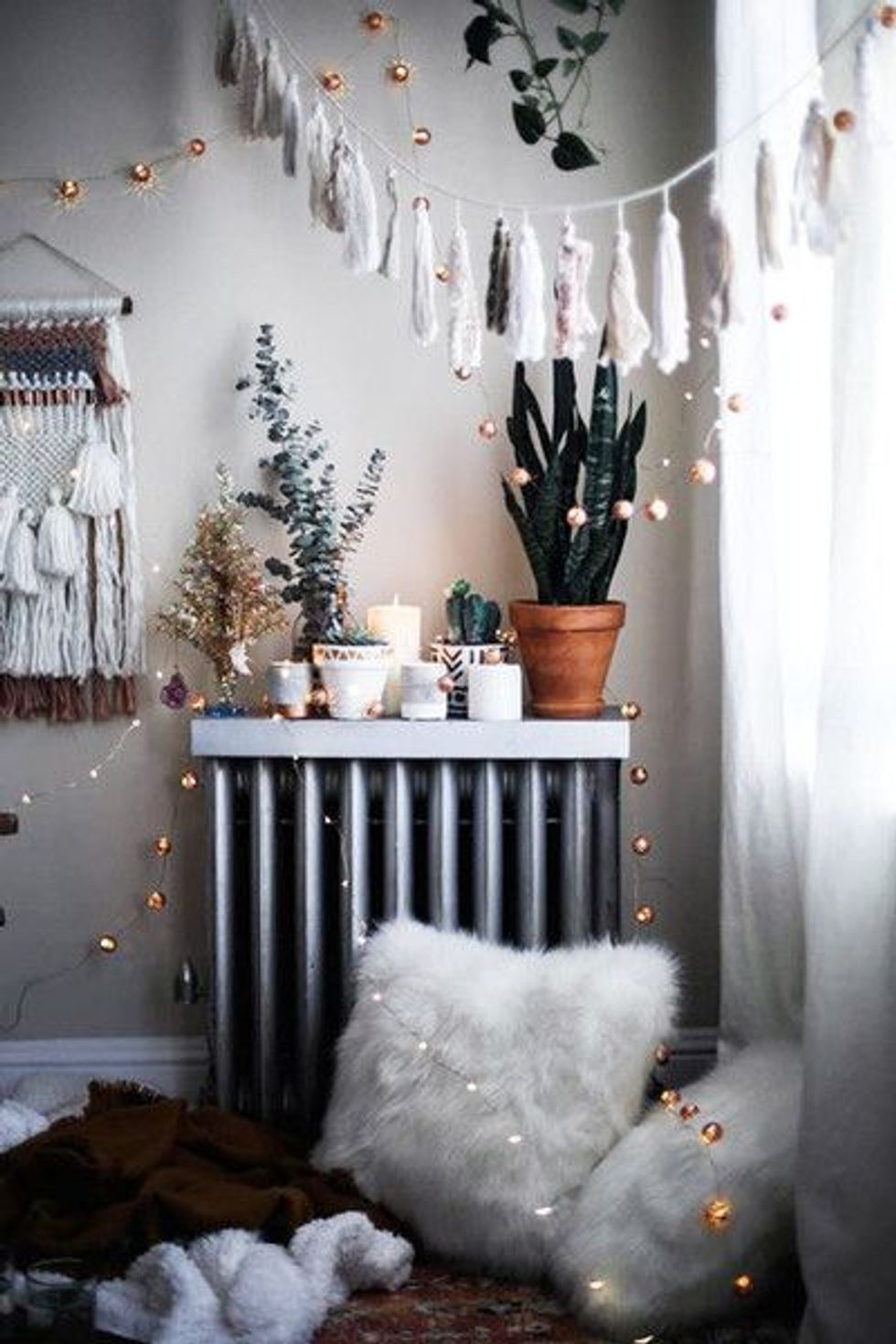 3. Hang White Christmas Lights for a Better Nonconventional Lighting Option
