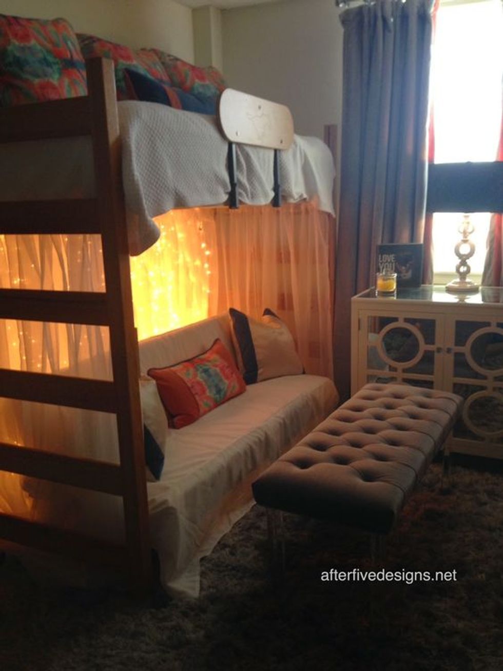 This can be done by hanging paper lanterns, lights, photographs, canvases, tapestries, and anything you can think of! Utilizing your ceiling and upper wall space creates a more dynamic room. This also allows you to further customize your space without cluttering the lower wall space you can easily reach where it might be more beneficial to hang up calendars, reminders, etc. Paper lanterns are also cheap to buy and are an easy way to spruce up your room!