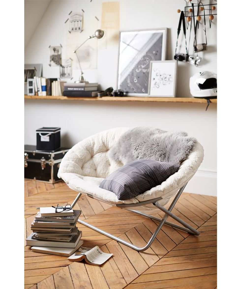 Whether you plan on having guests over frequently or not, extra seating space can come in handy. Sitting on your bed or at your desk will become tiring and if you don’t have an apartment, a comfy chair will surely hit the spot! Easy options include foldable bubble chairs, Ottomans, and Bungee Chairs. For a more permanent setup, opt for Loveseats, Armchairs, or a small Sofa.