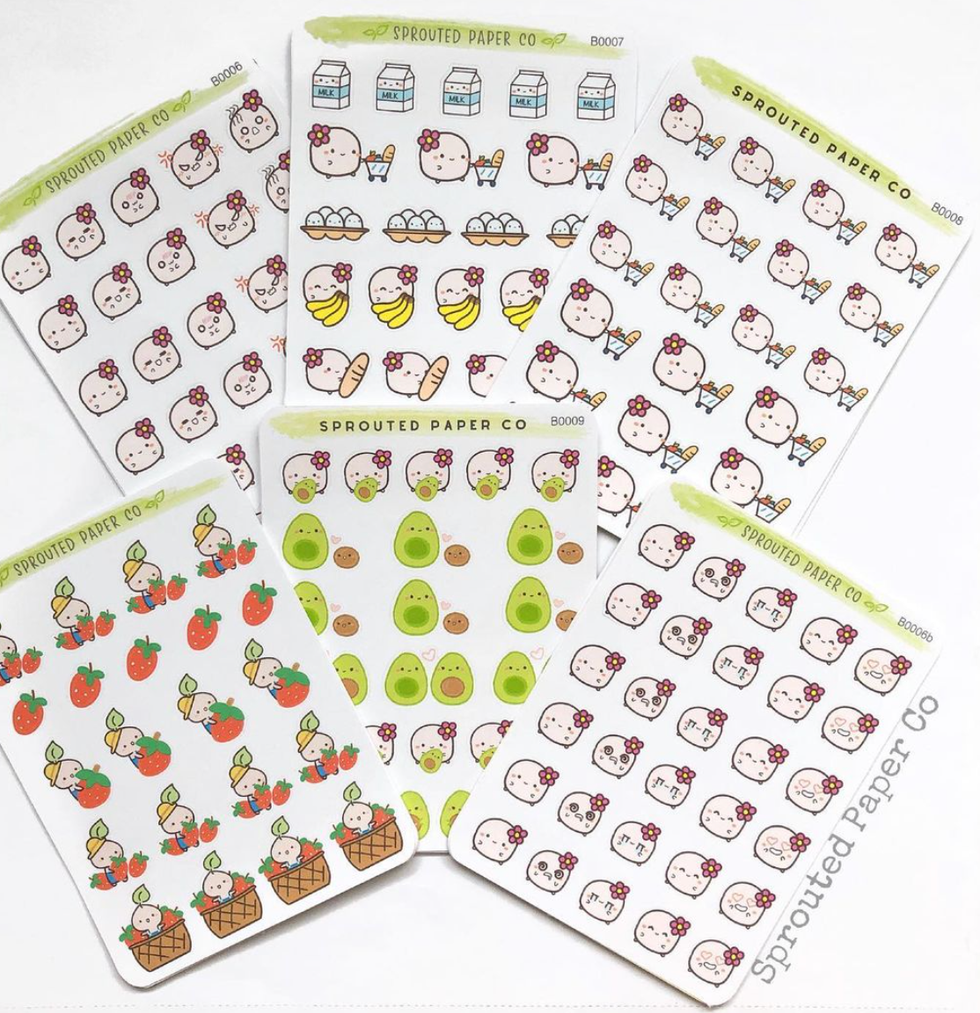If you're a student, these stickers can definitely spice up your planner! @sproutedpaperco is one of the first shops that I've seen with so many different sticker sheets that relate to daily life such as grocery shopping, online shopping, Netflix binge-watching, receiving packages, and more! This shop also combines its character with various famous shows/movies such as Adventure Time, Toy Story, the Avengers, and more in their own style.