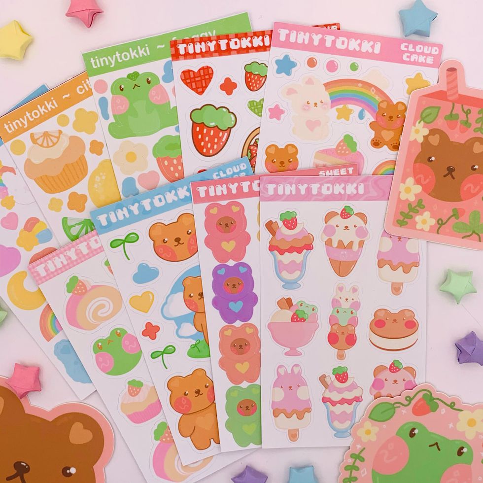 TinyTokki Shop has bright and colorful sticker sheets! Her art style is very cute and bubbly. In addition to stickers, she also sells art prints, washi tape, pins, and charms! Her shop is based in Australia but shipping to the United States did not take long! I love the art she posts on her Instagram as well, her love for art really shines through.