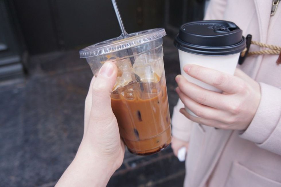 After you get done with stuffing your face, grab a coffee from your favorite coffee shop, so you can walk around with it for number three: