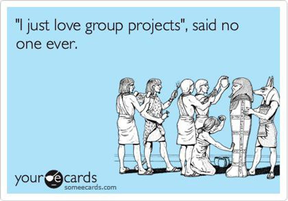 I highly dislike group work. My group is usually all the overbearing people who like to get things done two weeks before the due date and I'm just not like that.