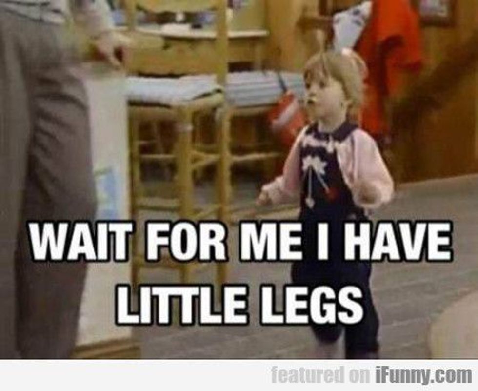 Once in college you will notice everyone you're friends with will be taller than you. While walking to class or to get food, you'll notice you have to run to keep up with them. Your little legs just simply cant keep up.