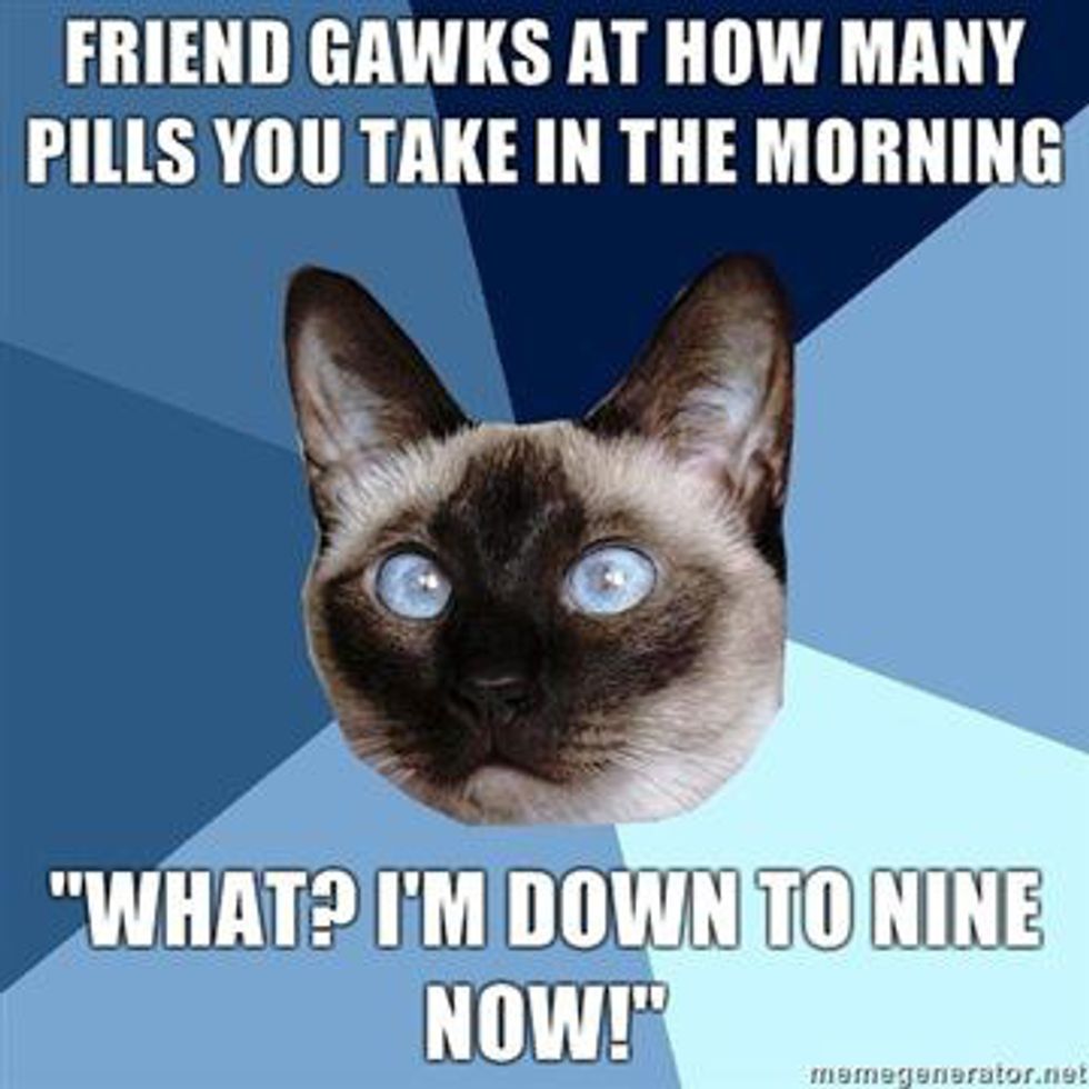 Because each doctor has you on a medicine they think will help to alleviate your symptoms, but the day one of them decides you don’t need a certain prescription anymore is like Christmas!"But you don't look sick"
