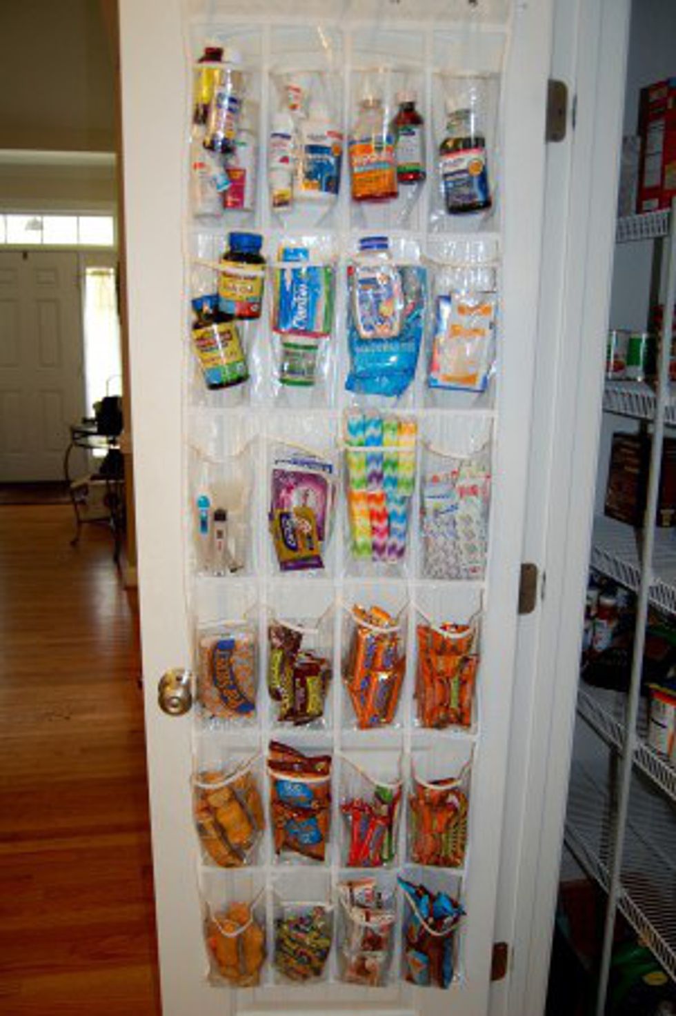 Shoe organizers are not just for girls and could save you a lot of space! These shoe organizers can be hung on the back of your door or even in your closet. They can be used to hold your shoes, keep your cleaning supplies, or even act as a cabinet for your snacks! There are lots of things you can do with shoe organizers.