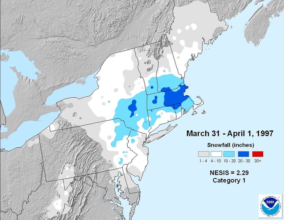 (A meteorological picture of the April Fool's Day Blizzard of 1997)