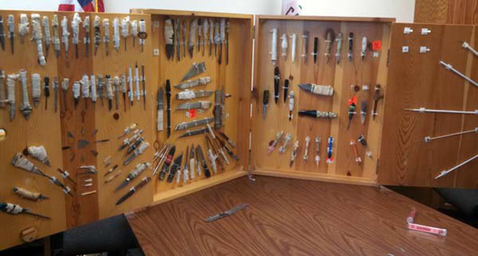 The shank collection at Pelican Bay is amazing. Yes, they were used to stab, cut or impale others. However, I can admire the innovation of the inmates. So many different designs and so many different materials. Plus, Pelican Bay is home to several big players in prison gangs. This has created a large collection of shanks in the investigative unit, impressive in itself.