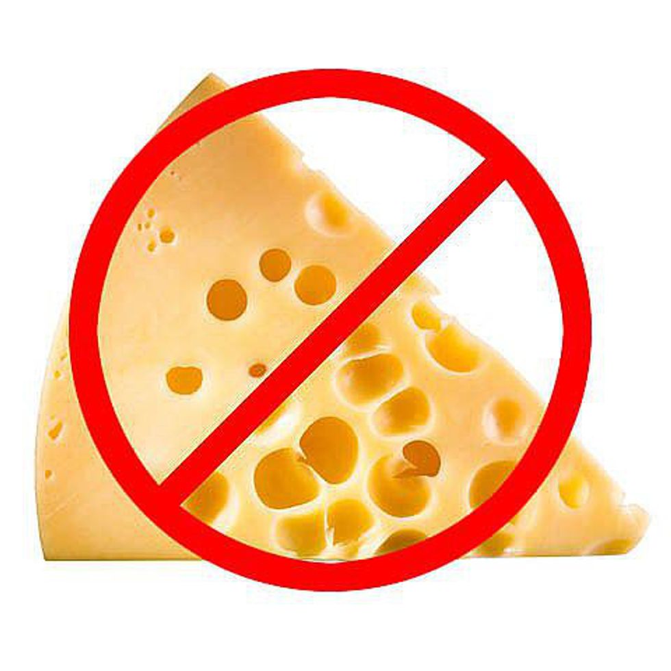 Absolutely no cheese. Do not eat cheese. Do not speak about cheese. Do not think about cheese. No cheese.