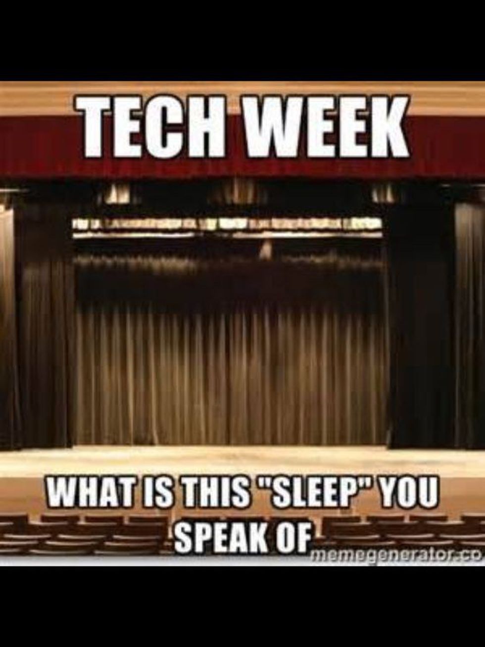 When it comes to the week before opening night for theater, it is long, tiresome, and it is hard. Long hours on the stage, costume changes for the first time, crew running around just trying to figure what is going on. It is difficult. It is one of the longest weeks for any person that is involved in theater. The no sleep, the stress, the fear that you will make a mistake to ruin things, it can be scary. Though no matter the stress, no matter the amount of time and tears and sweat that goes into the play, it can also be one of the best weeks. Here are a few things that everyone can relate to when it comes to tech weeks.