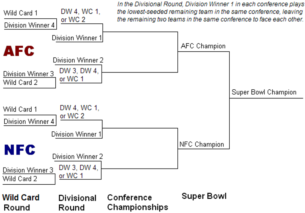 The way the playoffs work in the NFL is a bit different. If a team with a 7-9 record happens to win their division then gets to be in the playoffs, then it really seems unfair to those who had a good season but were screwed out of clinching a spot. It happens every year. Teams with a good season can possibly not make the playoffs because they didn't get the wild card and some subpar team from a weak division gets to make the playoffs. That's pretty much like being second or third in a race but you didn't get to make the next round because fifth place is the winner in their division. It doesn't seem quite fair for teams that had a good season.