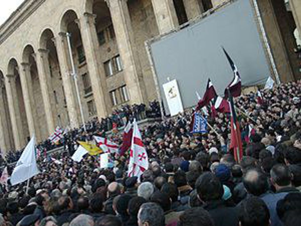 On November 23rd, 2003 this revolution brought peaceful change as Georgian president Eduard Shevardnadze, known for his corruptness and accusations of nepotism, was removed from office. Thousands and thousands of Georgians flooded the streets of Tbilisi in the final wave to force the government out of power. It was different from the power struggles associated with the civil war in the 1990s. No deaths. No injuries.